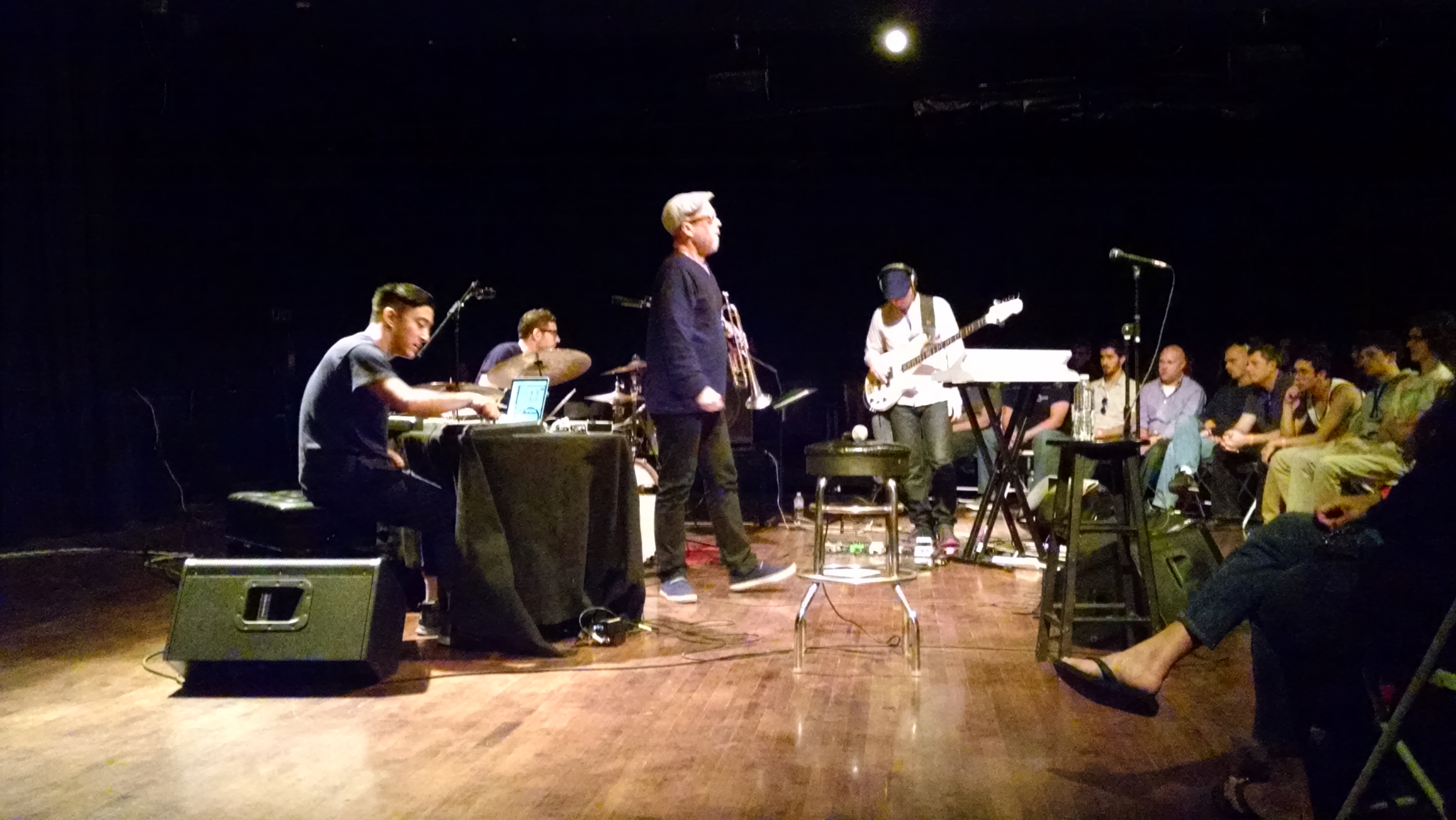 My main reason for attending this and thus staying was the Mark Guiliana drum clinic/after show. I knew nothing of this group but I’m glad I stayed. Remember when I mentioned that I have a hard time listening to newer jazz done with the instruments of old? Well, this is something I can get down with and am excited to eat my words. It was Mark Guiliana on acoustic drums, Dave Douglas on Trumpet, Shigeto on electronics and Jonathan Maron on Bass and keys.