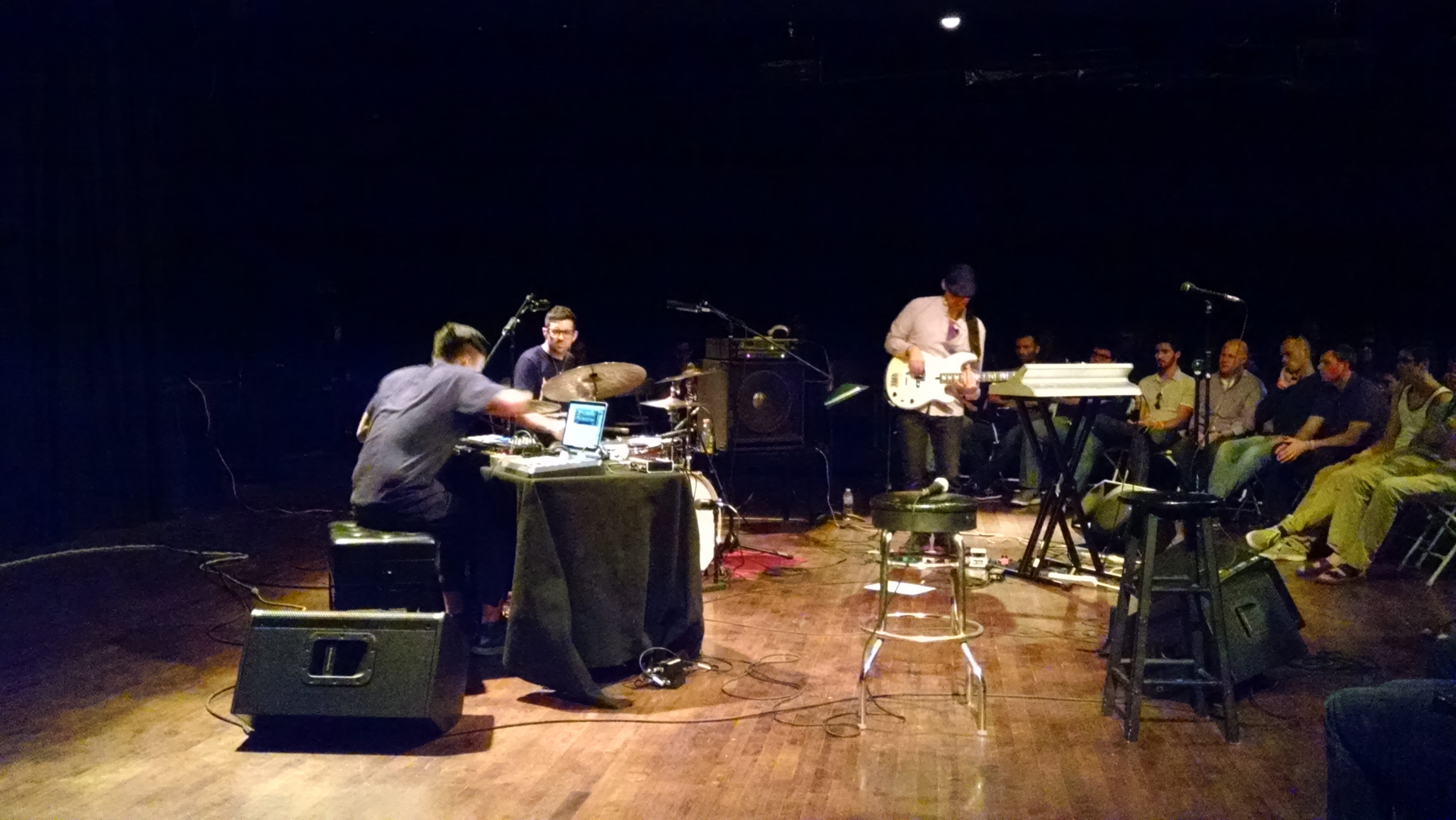I was obnoxiously annoyed right at the start, hearing the typical slow dramatic start that happens with most music, but that really is something I need to get over. It lasted for a few minutes and got you adjusted to the group, and then they tore into it. Although the songs were a jazz swing feel they weren’t your typical beat on the ride swing style jazz. The trumpet played melodies, but also veered on the edge of free jazz and drawn out sounds. The electronics and the drums had a nice sync, complementing each other, but also having certain spots where they were allowed to breathe on their own and share their own voice.