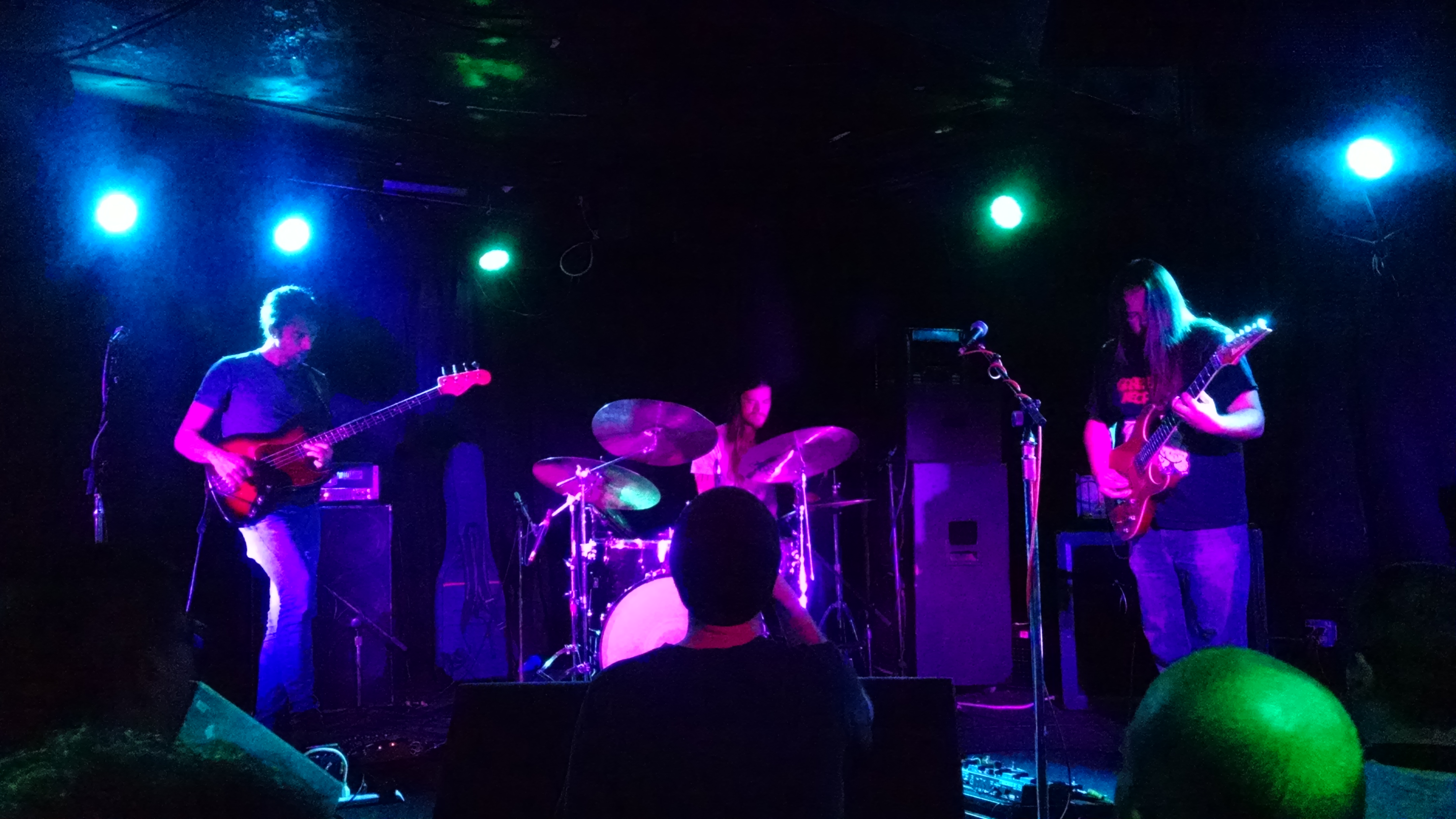 My previous band arbogast had the pleasure of playing with Guzzlemug at Burlington and Ultra Lounge 2 years ago. When I first saw them their drummer was clean cut and was wearing a beret. He chewed gum and was ripping through his set with the greatest of ease. On Saturday he was channeling his inner Andrew WK wearing white with hair down to his shoulders. The drum mix was quiet which is unusual for the Empty Bottle, which is unfortunate because he’s really good. The mix would’ve made their set better because the drums, and I may be biased, provide some nice grooves to get you into the weirdness of their music. If they’re not heard enough you can lose track of the timing and then the guitar and bass are just in sync. It just provides a nice overall sound. Guzzlemug is a progressive jazz rock style band, which can go off in out there directions. They have 17 minute tracks and full releases with just 1 track. It’s a shame this was their last show but sometimes this is the way of progressive bands. It’s hard for them to catch on but they still leave the world with their music, and hopefully in time it can be found again. I’d highly recommend their last 2 releases (as those are the only ones I’ve listened to).