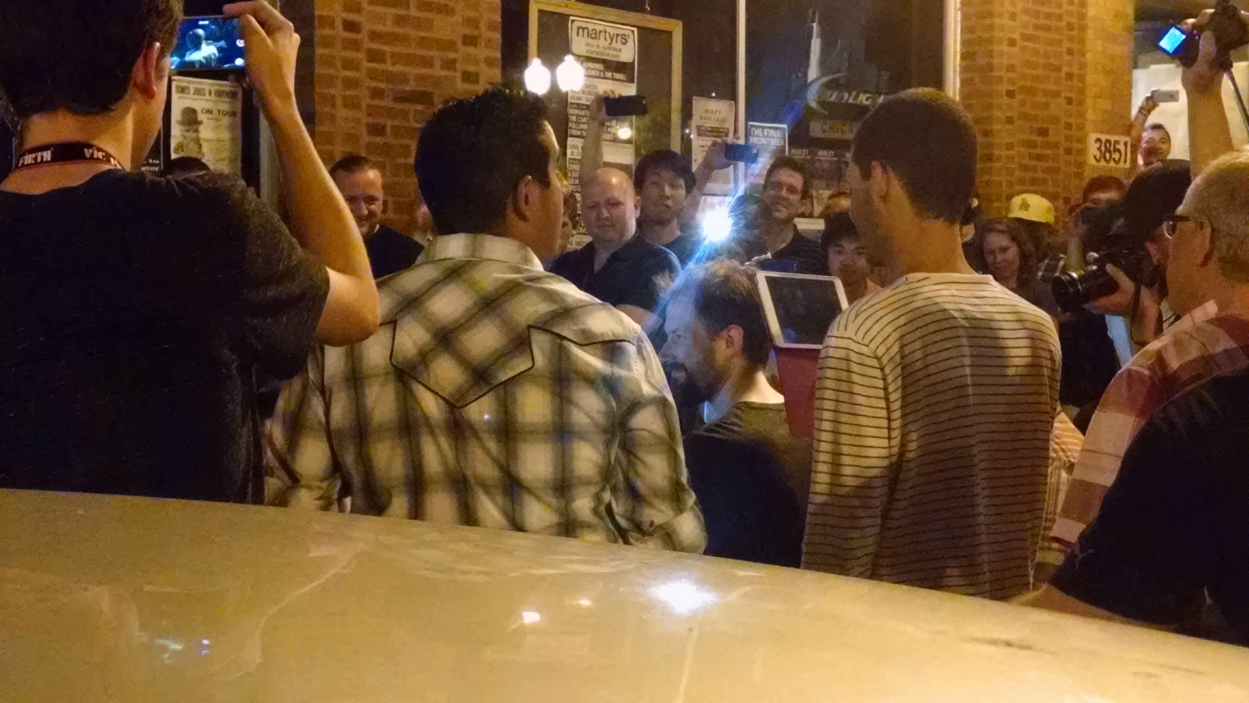 We walked up to the venue at 8pm and the line was halfway down the block on one side and about 30 ft on the other. Not being a fan of lines and assuming we wouldn’t get a table anyways we walked to the closest bar for a couple drinks. After 20 min we walked back to Martyr’s only to find the line still there. We waited for a little, then a random dude told me they’re doing sound check. Fine. We went back in line and waited for 5 minutes. I suggested going to a different bar but wise Kathryn said we should stay “what if they let people in?” “it’ll take 15 minutes to get everyone in anyways, we won’t miss anything”.